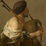 Cariani interpreted his Venetian models in a highly realistic Lombard manner. The musician accurately strums the six-stringed lute; near him are a white handkerchief with which to wipe his hands and a small box containing a spare string. Like the musical instruments, the costumes, especially the fur-lined cloaks, are treated with the utmost attention to texture and detail. All three figures, to judge from their individualized features, must be portraits, although the sitters have yet to be identified. Most impressive is the corpulent musician. He bursts onto the scene, separating the tutor, who is shown holding a book on the left, from his aristocratic young pupil, who looks out at the viewer from the right. Cariani’s earthy realism gives the musician a humorous air: with his head cocked as if seeking inspiration, he is one of the great comic inventions of Italian Renaissance painting.